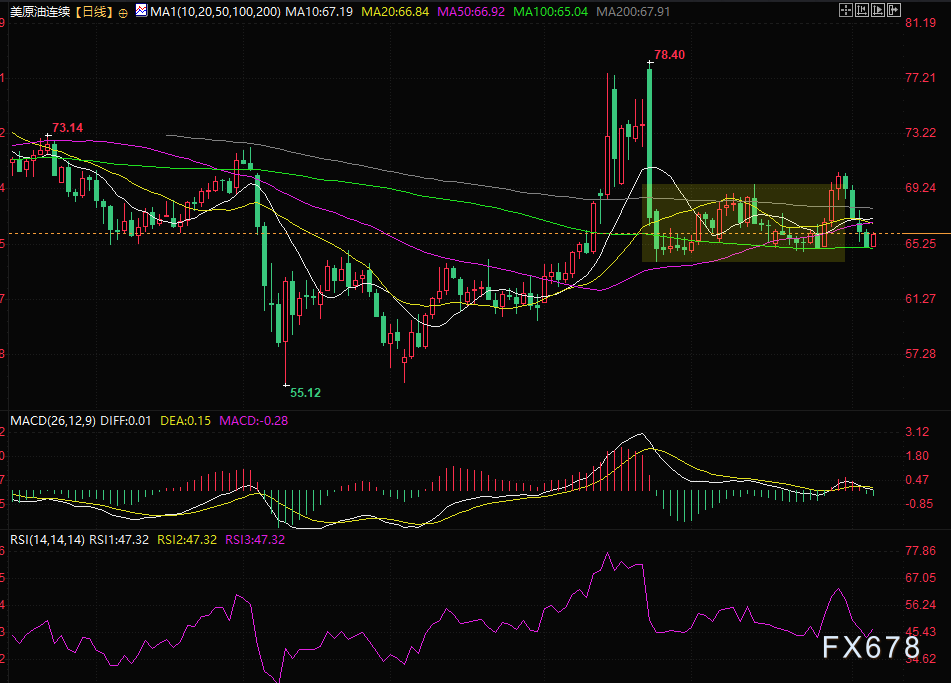 (美原油日线图,来源:易汇通)   北京时间17:00,美原油现报:66.13/15